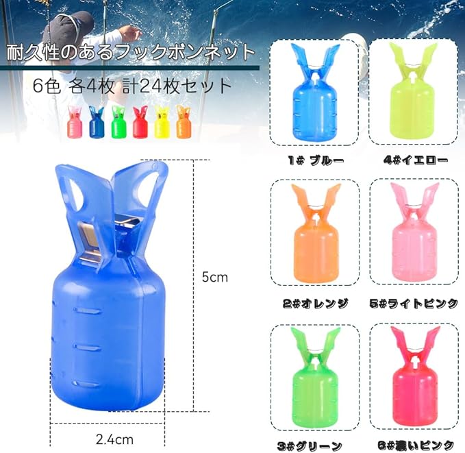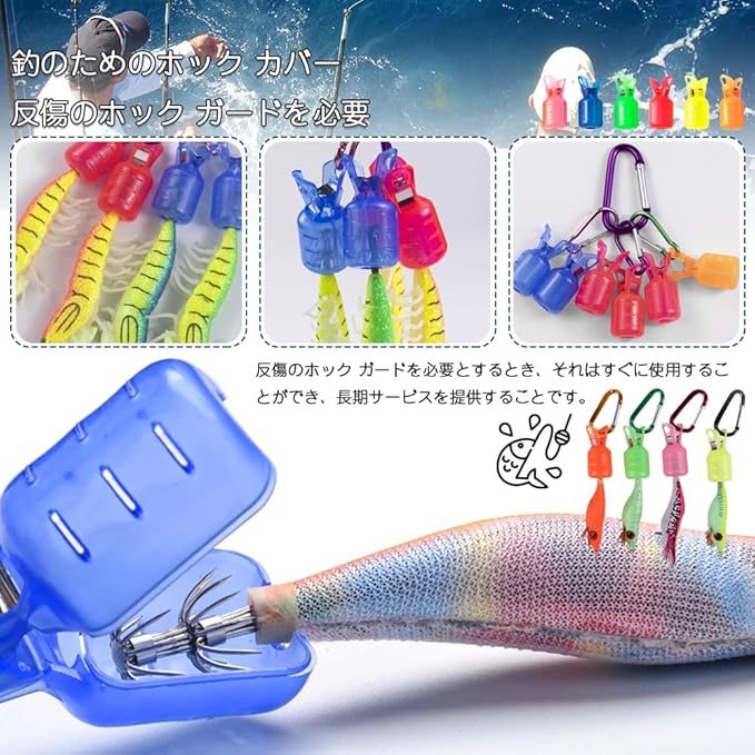 セット内容:釣り針保護具6色 各4枚 計24枚セット(ブルー/イエロー/オレンジ/ライトピンク/グリーン/濃いピンク);サイズ:約5.2*2.4cm;反傷のホック ガードを必要とするとき、それはすぐに使用することができ、長期サービスを提供することです。