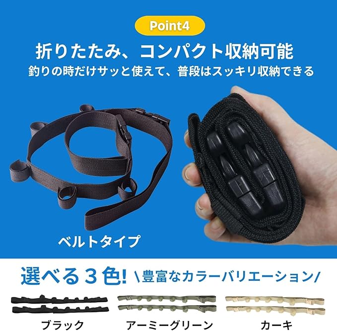 【ワンタッチで簡単取り付け!工具不要ですぐに使える】ベルト式のシンプル構造で、車のアシストグリップに取り付けるだけ。工具は一切不要、女性や初心者でも簡単にセット可能です。釣り場への出発前にもスムーズに準備できます。