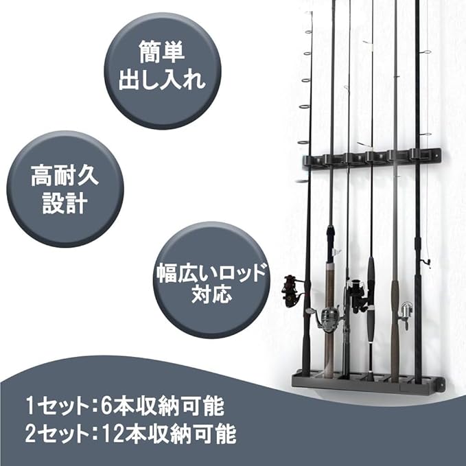 【商品詳細】 ■収納本数 1セット:最大6本 2セット:最大12本 ■重量:約212g ■対応ロッド径:最大約20mm ■素材:ABS樹脂