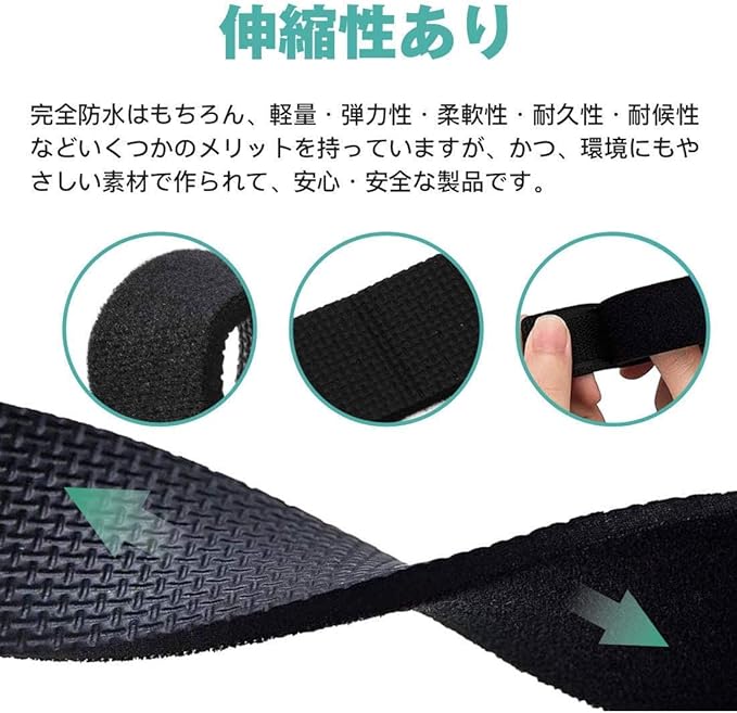 【伸縮性あり】高品質のナイロンとゴムを採用しており、柔軟で弾力性があり、伸びやすいです。釣り竿ベルト 完全防水はもちろん、軽量・弾力性・柔軟性・耐久性・耐候性などいくつかのメリットを持っていますが、かつ、環境にもやさしい素材で作られて、安心・安全な製品です。