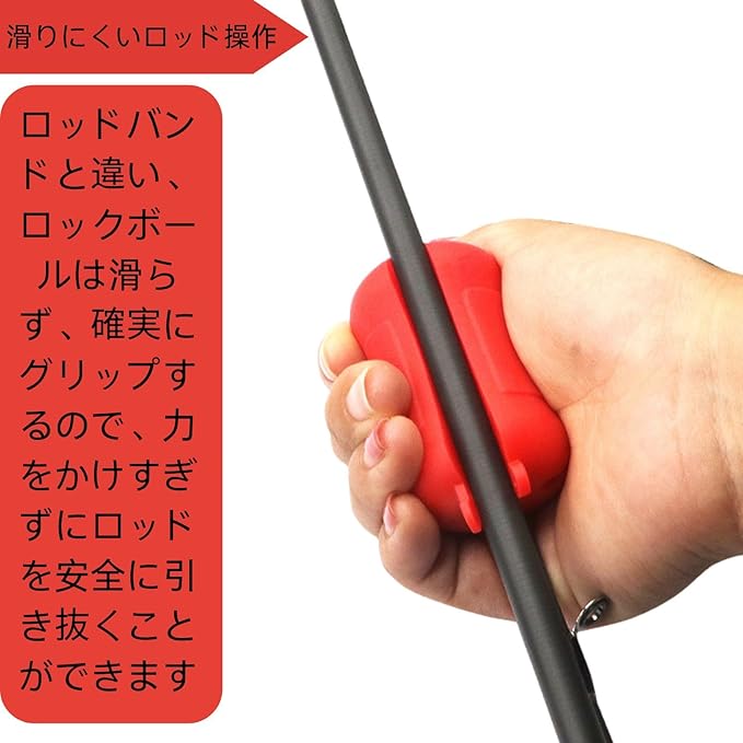滑りにくいロッド操作:ロッドバンドと違い、ロックボールは滑らず、確実にグリップするので、力をかけすぎずにロッドを安全に引き抜くことができます