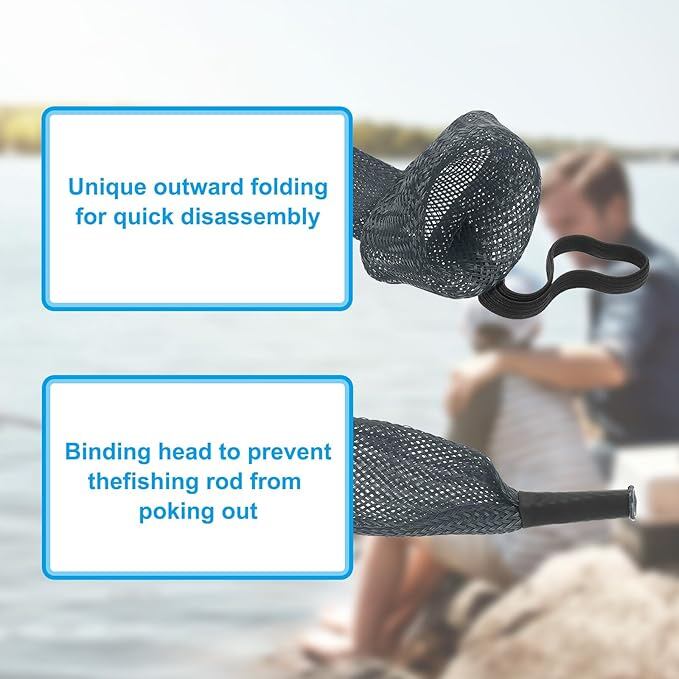 釣り竿カバーは、フライフィッシングロッド、スピニングロッド、キャストフィッシングロッド、海釣りロッドなど、あらゆる種類のロッドに適しています。ロッド収納キャビネット、ロッド収納パイプ、トラッ クの後部、または往復船に非常に適しています。釣り竿や車両でのイライラする絡まりを防ぐことができます。それはあなたのロッドの最も便利なアクセサリーです。