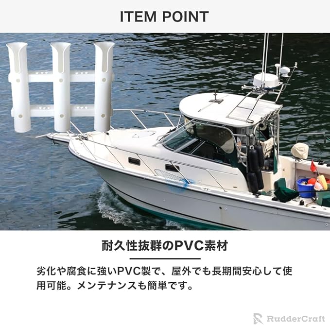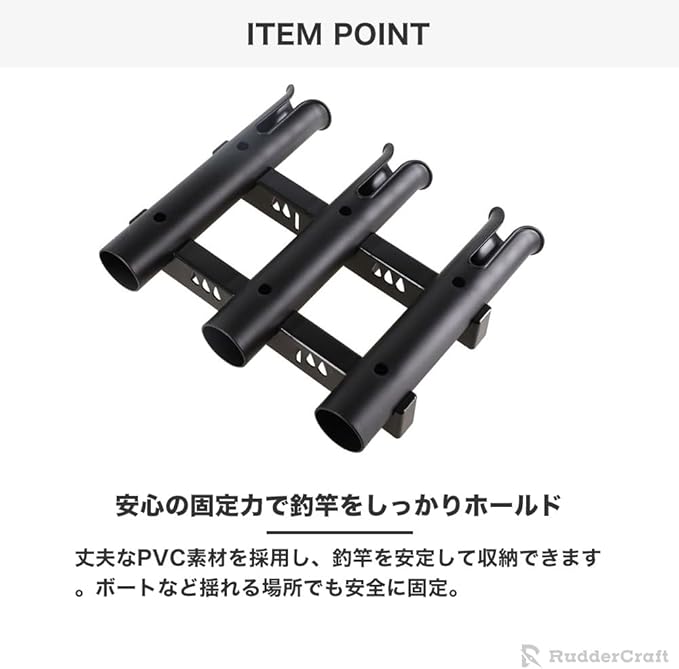 【安心の固定力で釣竿をしっかりホールド】丈夫なPVC素材を採用し、釣竿を安定して収納できます。ボートなど揺れる場所でも安全に固定。