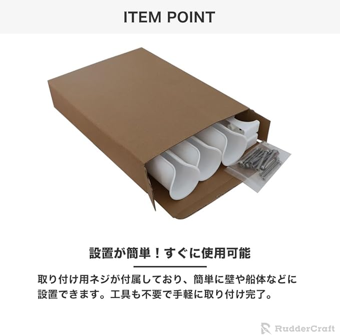 【設置が簡単!すぐに使用可能】取り付け用ネジが付属しており、簡単に壁や船体などに設置できます。工具も不要で手軽に取り付け完了。