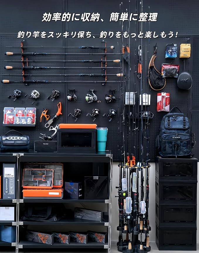 【移動自由】万向キャスター搭載により、魚竿の出し入れや移動が非常にスムーズ。部屋や釣り場でも簡単に位置を変えられ、限られたスペースでも効率的に収納できます。移動が可能なため、どんな環境でも快適に使用できます。