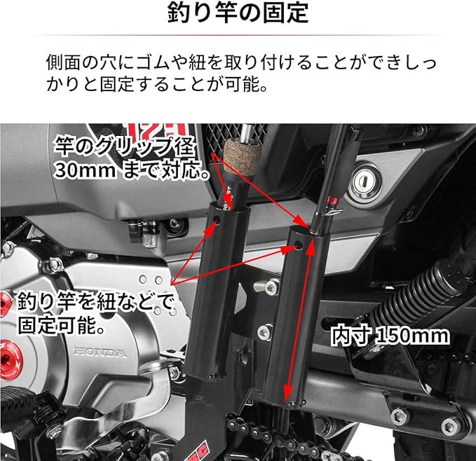 ディーアールシー(DRC) CT125(JA55/JA65) '20-25 フィッシングロッドホルダー ハンターカブ 2本まで収納可能 竿グリップ径30mmまで対応 角度調節 D6572