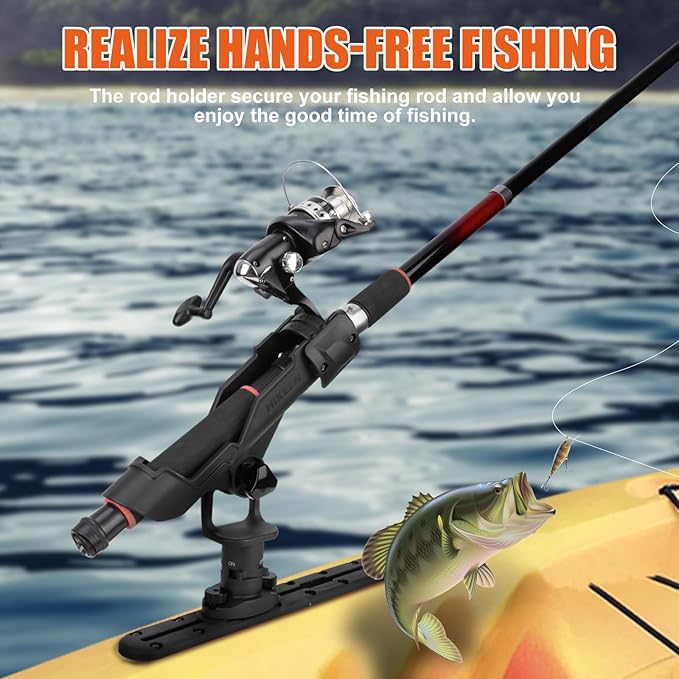 Hikeen 360度調整可能カヤック釣りロッドホルダー T型ネジ取り付け式、レール&船体両対応