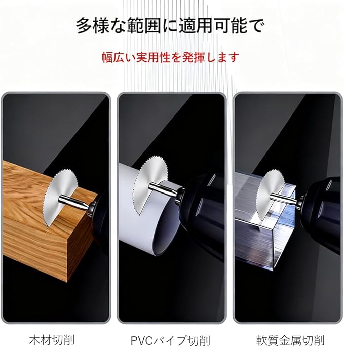 【多様な作業に対応】鉄管、銅板、アルミなどの金属加工から、木材、タイル、陶磁器まで幅広い材料の切断に。DIY工芸からプロの現場まで、あらゆる切削ニーズに応えるマルチなカッターセットです。