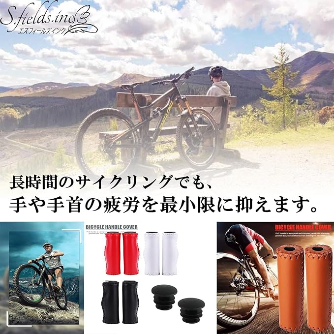 S.fields.inc ハンドルバーグリップ 自転車 PUレザー ステッチ入り フラットバー