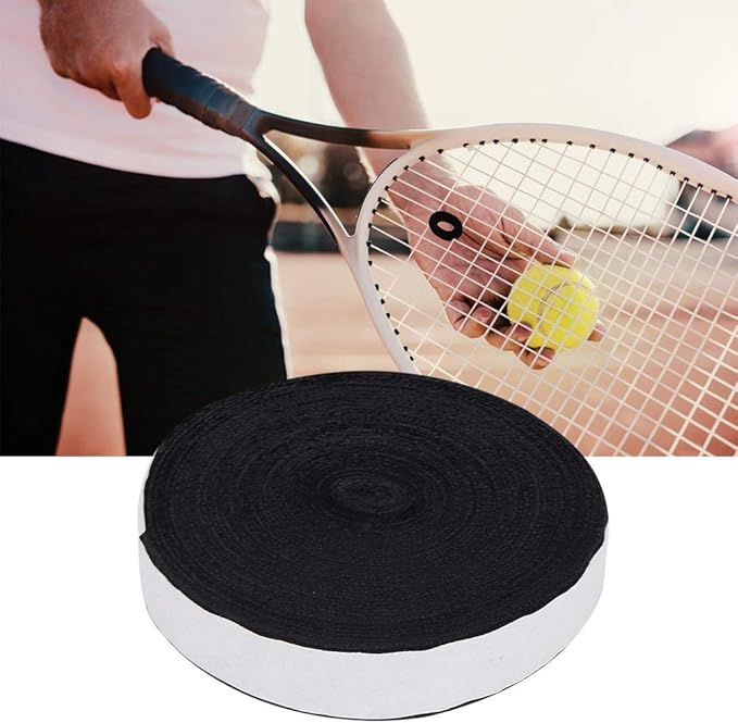 バドミントンラケットタオルグリップ、滑り止め10Mラケットグリップテープ、バドミントンラケット用の 屋外スポーツツールアクセサリーテニスラケットスポーツ用品(black)
