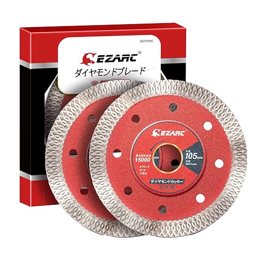 EZARC 薄型ダイヤモンドカッター 105mm 乾式 湿式 ダイヤモンドブレード 薄刃 ターボ 切断 高速研削 セラミック タイル 花崗岩 切断ブレード 2枚入れ