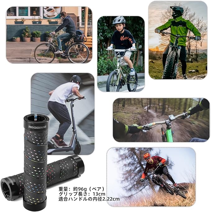 ROCKBROS(ロックブロス)自転車 グリップ クロスバイク対応 ロックオン式 シリコン素材 滑り止め 吸汗 快適 レインボーテープ風 22.2mm 六角レンチ付き ハンドルグリップ 黒/白