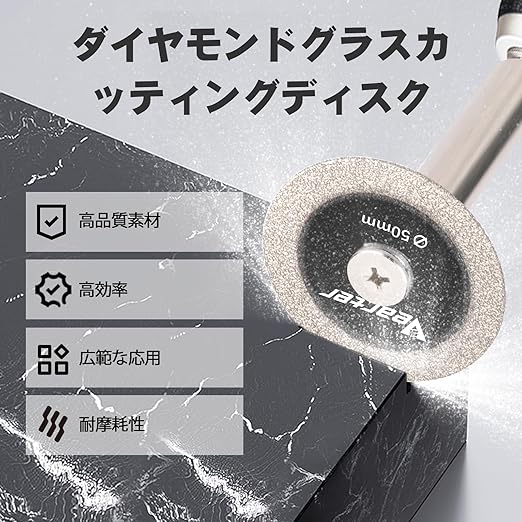 安全なご使用を - ダイヤモンドカッターをご使用の際は、保護メガネと手袋の着用を必須とし、火花や飛散物に十分ご注意ください。リューター工具と組み合わせ、安全かつ効果的にお使いいただけます