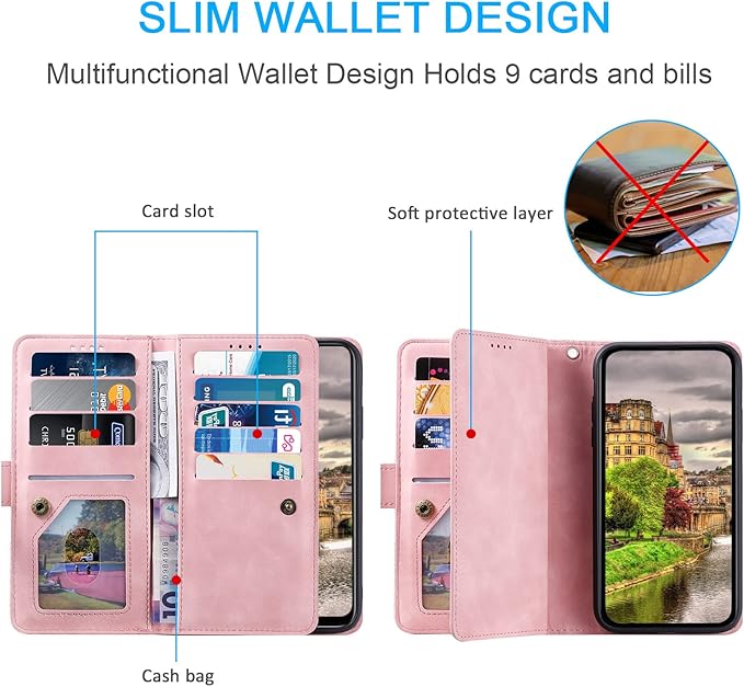 多機能財布:この財布 Google Pixel 9a ケースは9つのカードスロットと1つのキャッシュスロットがあり、かさばる財布を持ち運ぶことなく、IDカード、クレジットカード、現金を持ち運ぶことができます。また、ジッパーウォレットポケットは、コインや紙幣を便利に収納できるようにデザインされています。