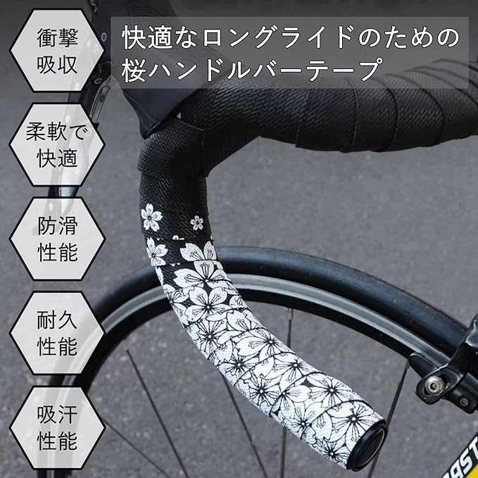 桜がデザインされたバーテープは、一般の自転車やロードバイク、マウンテンバイク、ベビーカー、釣り竿など、幅広い用途に適しています。