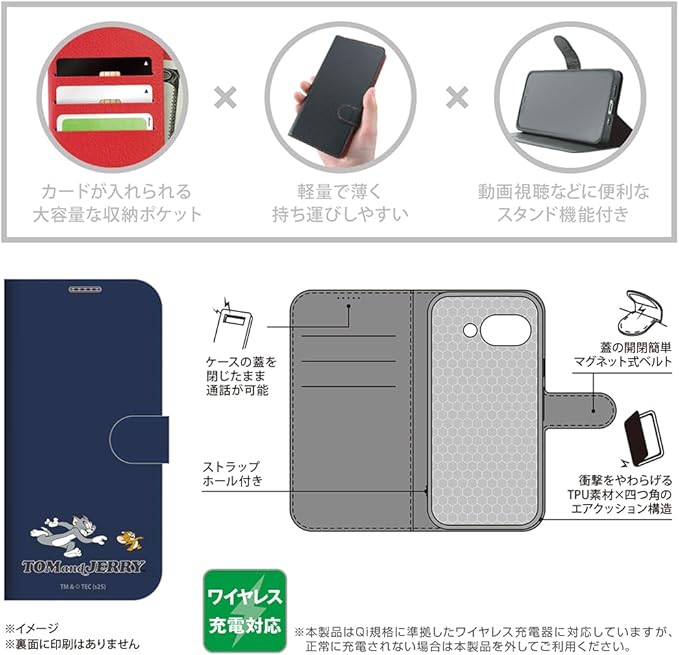 TOM AND JERRY and all related characters and elements & ™ Turner Entertainment Co. (s25) カードが入れられる大容量な収納ポケット。軽量で薄く持ち運びしやすい。動画視聴などに便利なスタンド機能付き。ケースの蓋を閉じたまま通話が可能。