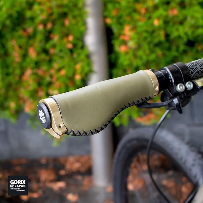 GORIX(ゴリックス) 自転車 革 レザー グリップ (GX-600) エルゴ ダブルロックオン 茶色 ブラウン サイクル 牛革 ネジ固定 交換 おしゃれ クロスバイク ミニベロ ハンドル