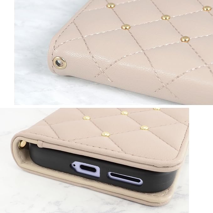 【特徴】 ・ふっくらしたキルティング ・開閉サポート付き ・カード収納付き 2ケ ・サイドポケット付き ・大きなミラー付き ・内部ケースはTPU ・ストラップホール付き
