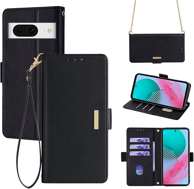 For Google Pixel 7A ケース 手帳型 ショルダー For グーグル ピクセル7A 財布型 カバー ストラップ長+短2本付き 肩掛け 斜めがけ 女性 おしゃれ ロングストラップ カード収納 横置き 上質な手触り 耐汚れ気質 肌感レザー 防指紋 耐久性 贈り物 COCOCLOUD ブラック