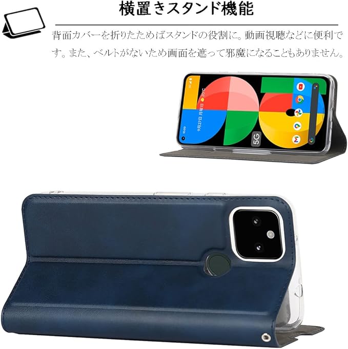 Elick Google Pixel 5a 5G 適用 ケース カバー 超薄型 軽量 手帳型 Google Pixel 5a ケース 手帳型 高級PUレザー マグネット式 ストラップ付き カード収納 スタンド機能 グーグル ピクセル 5a 5G ケース カバー スマホケース ネイビー