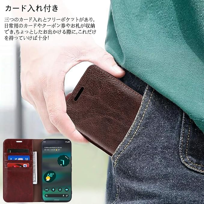Google Pixel 8a ケース 手帳型 【 マグネット無し 】 耐衝撃 カードケース pixel8a au docomo ドコモ SIMフリー softbank 全対応 手帳型ケース グーグル ピクセル8a カバー スマホ pixel8A 携帯ケース 財布型 適用 case 【iCoverCase】 マグネットなし スタンド機能 光沢加工 牛革 レザー 財布型 カード入れ ダークブラウン