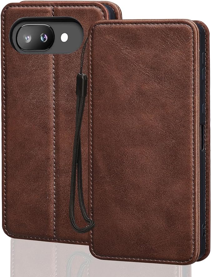 ケース 適用Pixel 9A ケース 手帳型 RFID 磁気スキミング防止 wangChuan ピクセル9A レザーケースカード収納 内蔵マグネット式(携帯ストラップ付き)ブラウン