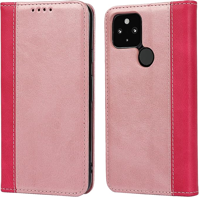 Pelanty for Pixel 4A 5G ケース手帳型 for Google pixel4a 5G 6.2'' 携帯カバー 財布カード入れ 横置きスタンド機能 内蔵マグネット 合成皮革+TPU グーグルピクセル4A 5G スマホケース 耐衝撃 2色組合せ ピンク X ローズレッド