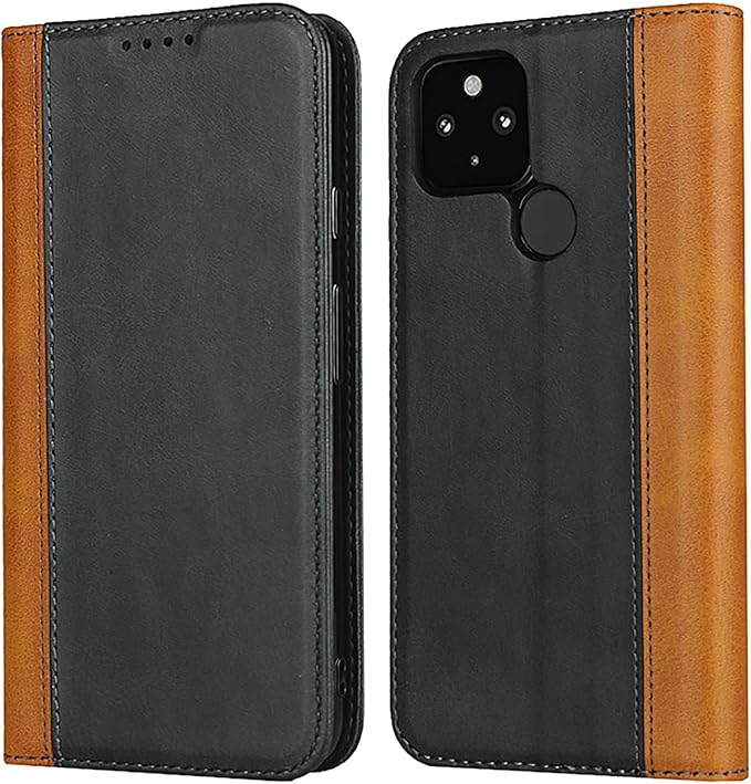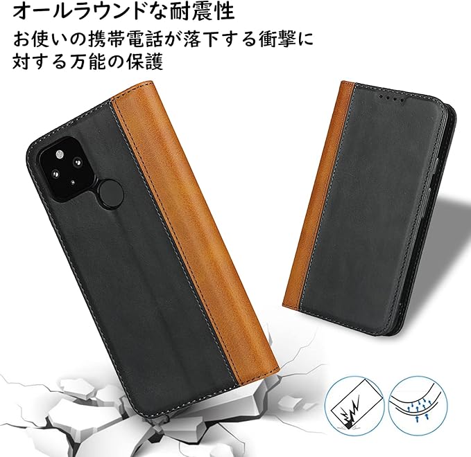 Havaya 対応 Google Pixel 4A 5G ケース ピクセル 4a 5g ケース グーグル スマホケース 手帳型 au docomo 耐衝撃 softbank カバー マグネット式 カード収納 スタンド機能 レザー(6.2インチ)-ブラック+イエロー