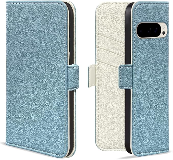 Kahper for Google Pixel 9/Pixel 9 Pro 5G ケース 手帳型 おしゃれ グーグル ピクセル9 / 9Pro ケース 手帳型 可愛い スマホケースGoogle Pixel 9 Pro マグネット式 ピクセル9 手帳型ケースカード収納 スタンド機能 Pixel 9 カバー 擦り傷防止 高級PUレザー 軽量耐衝撃 全面保護 放熱性 人気 女性(ブルー メ アイボリー)