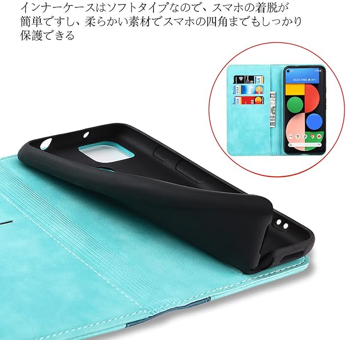Google pixel 5A 5G ケース 手帳型 pixel5A ケース 手帳型 SIMフリー softbank 全対応 ピクセル 5A カバー グーグル ピクセル5A 5G カバー pixel5A 5G スマホケース 手帳型 カバー pixel5Aケース 財布型 適用 case iCoverCase 合成皮革 内蔵マグネット 携帯カバー スタンド機能 落ち着いた色 2色組合せ レトロ ブルー ターコイズ