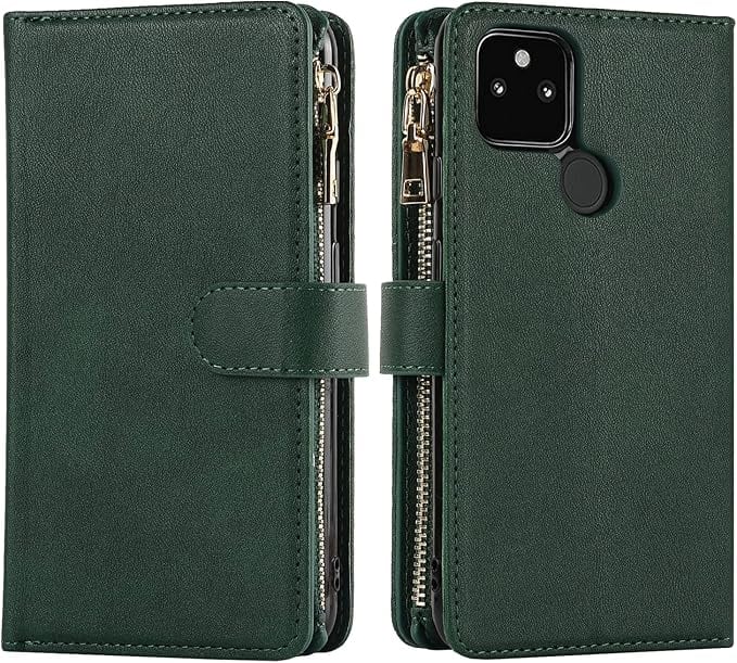 Eastwave for Google Pixel 5A 5G ケース for google pixel5a 5g 縄掛けケース 手帳型 財布型 ICカード コインポケット ストラップ付き カード 収納 小銭入れ ファスナーポケット付き PUレザー 6色グリーン