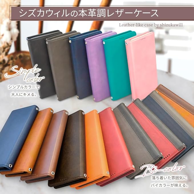 【上質な手帳型スマホケース】 本革調なのに高級感を演出してくれるフェイクレザー手帳型ケース!シンプルなデザインなので、ビジネスやフォーマルにもピッタリです。※製造時期によりケース角の仕様が商品画像と異なるものが届く場合がございますのでご了承くださいませ。