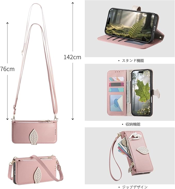 Vokpok対応 Google Pixel 9a ケース 手帳型 ショルダー 強力マルチカード収納 スタンド機能 耐摩擦 全面保護 グーグルピクセル 9A 財布型ケース 肩掛け 斜めがけ 手首かけ、掛けストラップ付き (長さ調整可能) おしゃれ 実用性 ジッパー小銭入れ Pixel 9A スマホケース PUレザー ある滑らかな手触り 贈り物 ピクセル9a ケース, ピンク