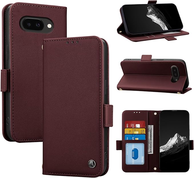 for Google Pixel 9A ケース 手帳型 高級レザー 財布型 ピクセル9a用 携帯ケース カード収納 耐衝撃 スマホケース ぐーくるぴくせる9a カードケース ポケット付き マグネット式 スタンド機能[ワインレッド]