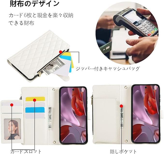 Google Pixel 9A ケース 手帳型 ピクセル9Aケース手帳型 Googleピクセル9A 財布型 ショルダー カード収納 Pixel9Aケース スマホケース グーグルピクセル9A ぐーくるぴくせる9Aケース 肩掛け 斜め掛け 携帯カバー グーグル ピクセル 9A カード収納 携帯カバー ピクセル9A カバー チャック付き 小銭入れ RFIDブロッキング おしゃれ - 白色