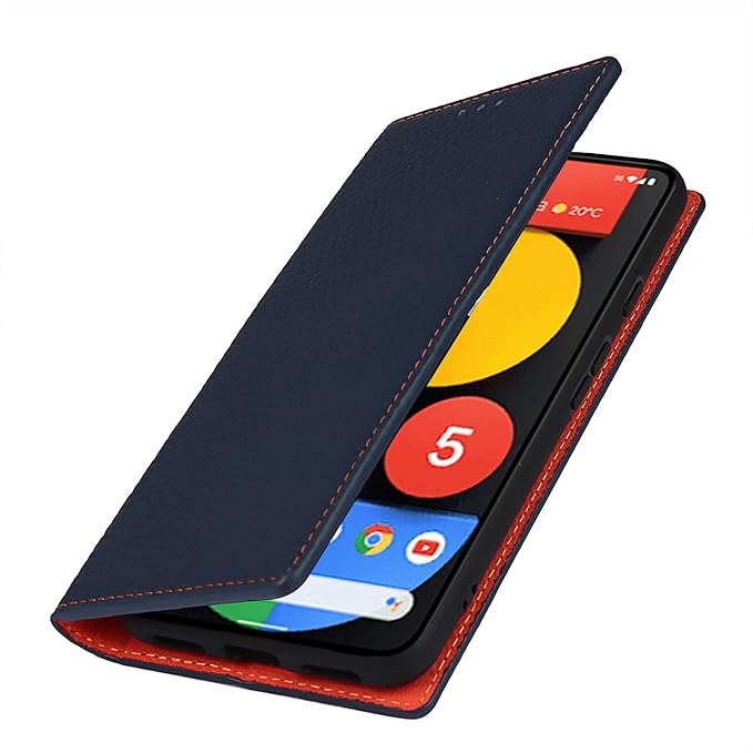 for Google Pixel 5A 5G ケース 本革 本革 for pixel5a 5g 手帳型ケース 財布型 カバー 手帳式 本革 柔らかい 本皮 スプラットホール付き スプラット同梱 内蔵マグネットカード収納 横置きスタンド機能 - ネイビー
