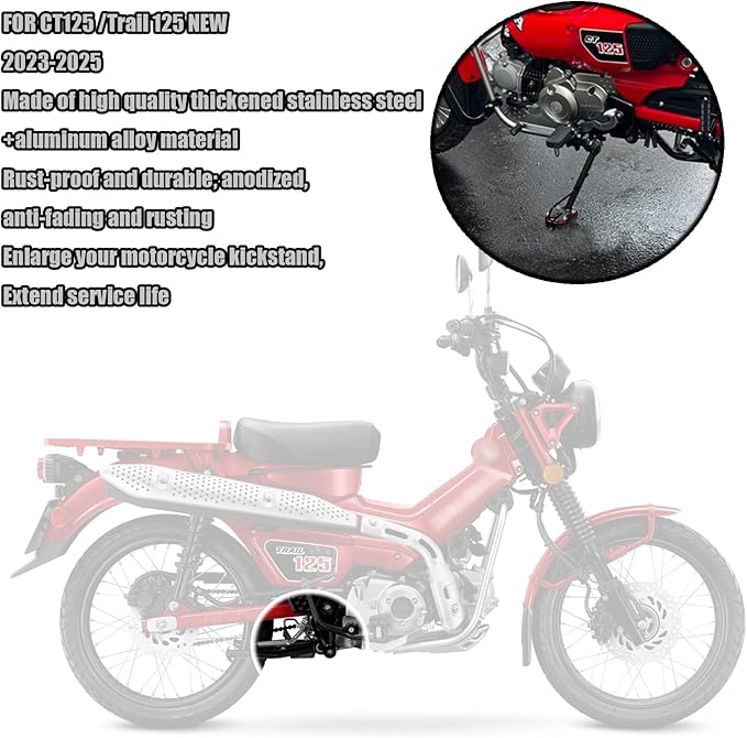 For CT125 トレイル125 CT125 2025 用 オートバイ キックスタンド フット サイドスタンド 延長パッド サポートプレート ペダル フットレスト ct125 Trail 125 2023-2025 オートバイアクセサリー (レッド) [並行輸入品]