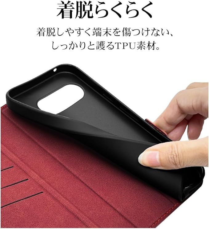 【着脱しやすい内側ケース】内側には、Google Pixel 9a( グーグル ピクセル 9a )を着脱しやすい柔らかなTPU素材のケースを採用。