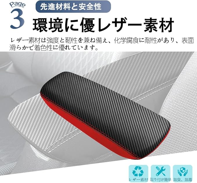 For 新型アクアAQUA MXPK11 MXPK16 MXPK10 MXPK15 MX系専用アームレストカバーコンソールアームレストプロテクター車種専用設計防汚・傷防止レザーインテリアアクセサリーアクアアクセサリー (レッド)