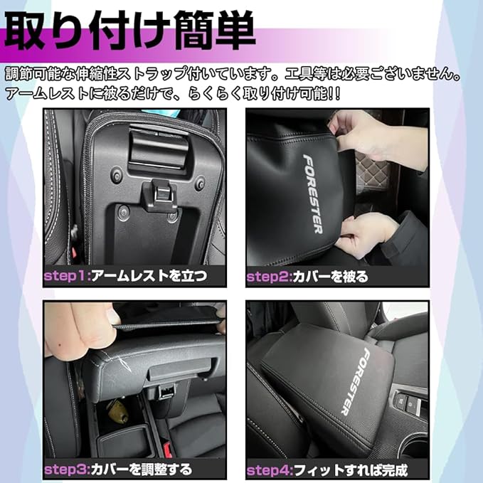 スバル フォレスター SL系に適合します。車種専用設計のためフィット感良好、違和感なくぴったりデザインしています。センターコンソールボックスの使用には影響ありません。