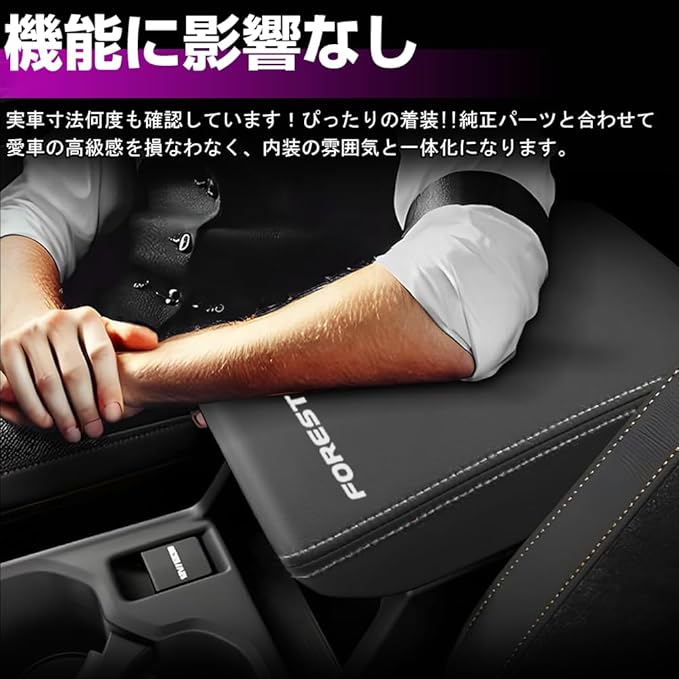 ❶【フォレスター SL 系専用設計】 スバル フォレスター SL 系に完全専用対応した設計で、実車を観察して、フィッティング確認を重ね、1mm 単位で寸法を精密測定して制作しました。アームレストの曲面や形状に完全に追随し、違和感なくぴったりとフィットします。アームレストの操作を一切阻害せず、日常の使用感を損ないません。