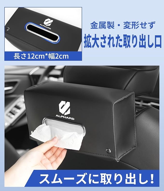 アルファード 適用 車 ティッシュケース 箱ティッシュ/ソフトパック兼用 大容量 26*17*8cm 車用 ティッシュホルダー アルファード 20系 30系 40系 対応 ティッシュカバー アームレスト ヘッドレスト 適用 交換簡単 マグネット式 カー用品 (厚型,アルファード 適用)