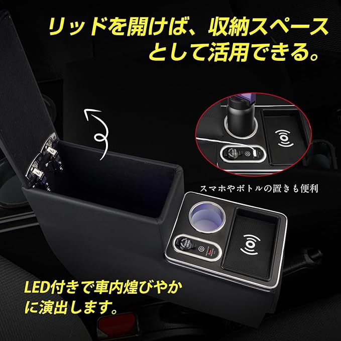 【収納力アップ】本コンソールボックスには、リッド(カバーぶた)がアームレストを兼用しているタイプです。リッドを開けば、貴重な収納スペースとして活用できます。車内の機能性が大幅にアップする優れセンターコンソールです。※:走行時の振動などで蓋が閉まって挟まれる可能性があるので、コンソールボックスを開けたままにしないよう注意ください。