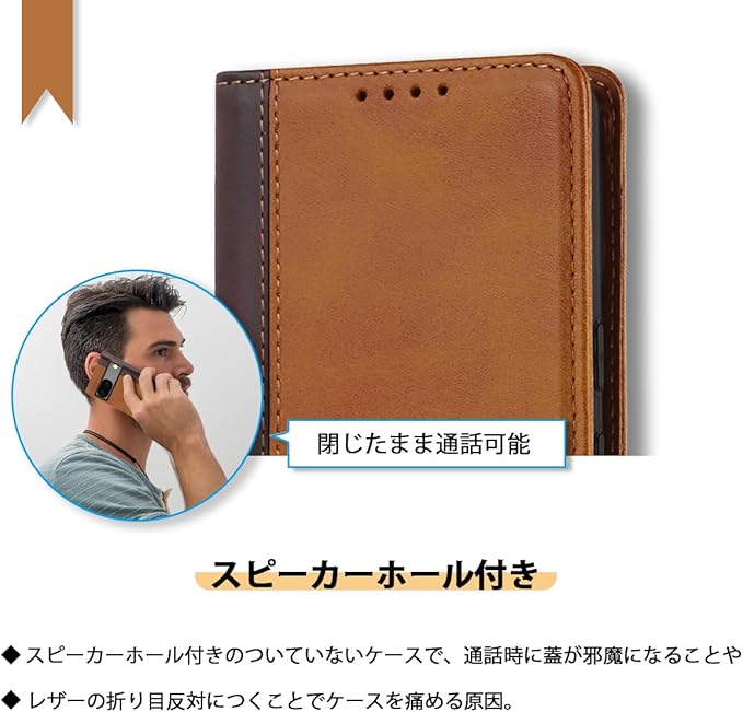 【マグネット式】内蔵マグネットの手帳型ケースです。カバーに使われているマグネット式の設計により、スマートフォンをしっかり固定できます。閉じたときにも電話の音は聞こえるので、持ち運びも簡単で使い勝手がよいです。お年寄りやお友達へのプレゼントにも最適です。