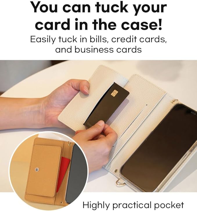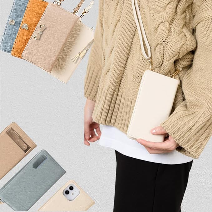 【長さ調整可能なストラップ付き】スマホケースと同じ色のショルダーストラップで、お好みの長さに調整して首や肩からかけられて両手を自由に!お出かけも楽々!