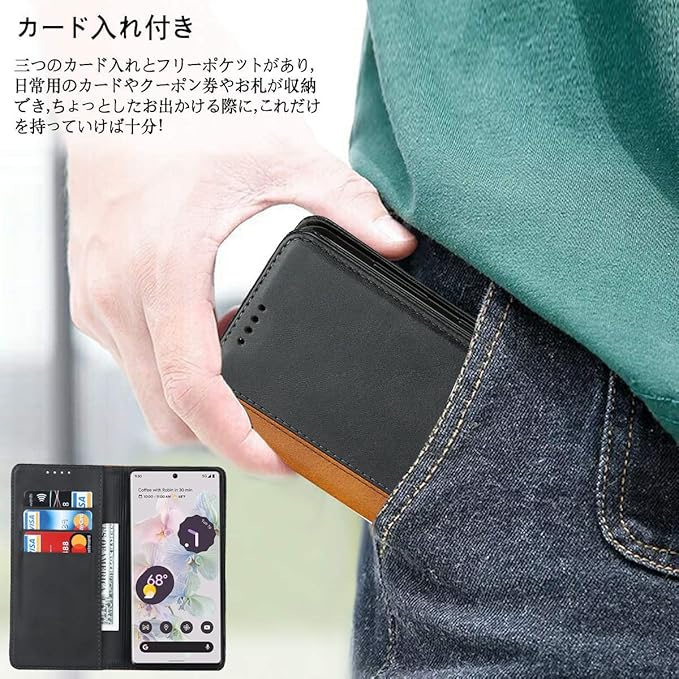 Google pixel 7 pro ケース 手帳型 適用 Google pixel7 pro ケース 手帳型 SIMフリー softbank au 全対応 ピクセル 7pro ピクセル 7プロ ケース カバー グーグル ピクセル7pro カバー pixel7pro 手帳 カバー pixel7 proケース 財布型 適用 CASE カードケース iCoverCase 合成皮革 内蔵マグネット 携帯カバー スタンド機能 落ち着いた色 2色組合せ レトロ ブラック