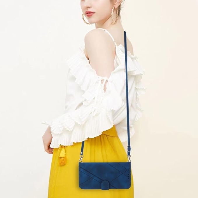 Google Pixel 9/9 Pro ケース 手帳型 通用 スマホケース 斜めがけ ショルダー 携帯ケース - 青