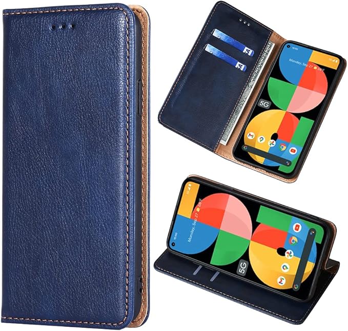 Google Pixel 5A 5G ケース 手帳型 Google Pixel 5A 5G 手帳 ケース マグネット式スタンド機能 カード収納 軽量 落下防止 衝撃吸収 全面保護 財布型 折り畳み式 横置き機能 携帯カバー Google Pixel 5A 5G スマホケース (ブルー)