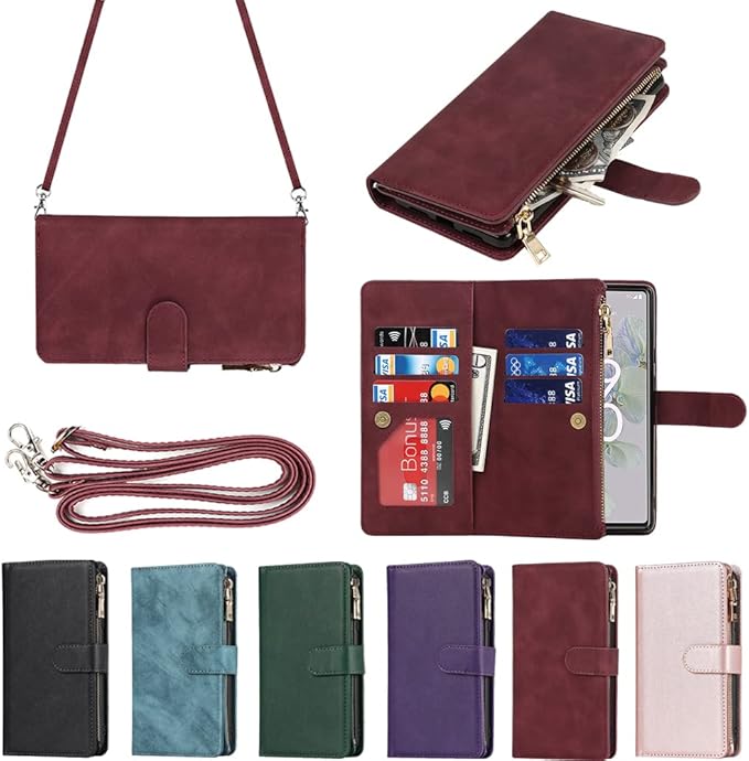 for Google Pixel 6A ケース for pixel 6a 縄掛けケース 手帳型 財布型 ICカード コインポケット ストラップ付き カード 収納 小銭入れ ファスナーポケット付き PUレザー 6色レッド