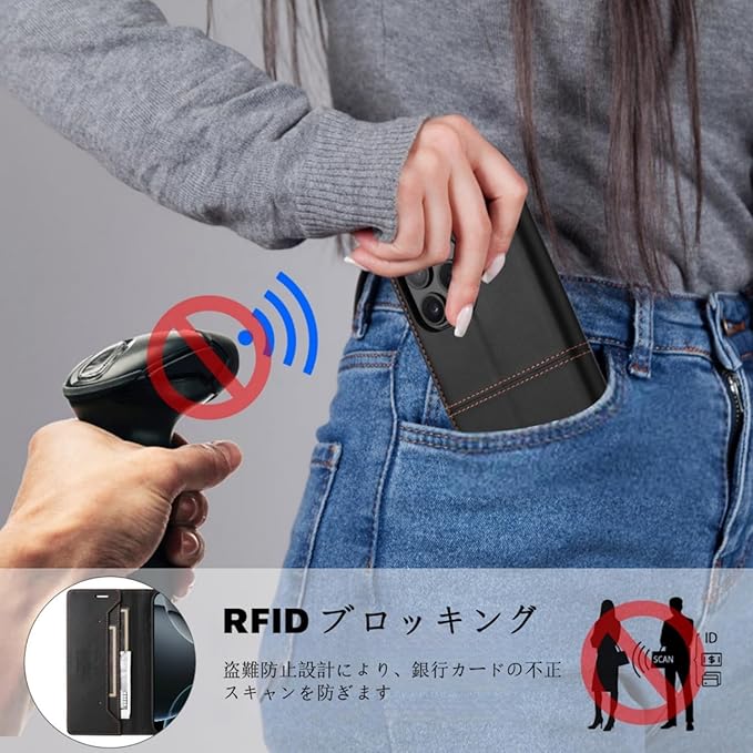 Google Pixel 8a 用 手帳型 スマホケース 財布型 [RFIDブロッキング] カード収納付き 高級PUレザー 耐衝撃 マグネット式 スタンド機能 全面保護 (ブラック, Google Pixel 8A)